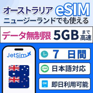 【オーストラリア・ニュージーランド eSIM】 7日間 高速データ 5GB 5G/4G LTE 即日発行可 テザリング可 簡単設定