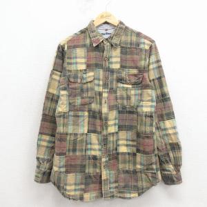 M/古着 長袖 シャツ メンズ パッチワーク コットン 薄緑他 チェック 26jan31