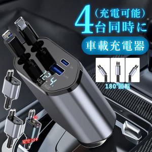 【2025年の最新版!】シガーソケット 4台同時に充電 巻き取り式 12V24V 車載充電器 USB Type-C Lightning 車載電圧測定 カーチャージャー 取付簡単 団体旅行