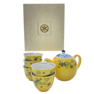 たち吉◆和食器/6点セット/949-0305/黄地魚藻文/茶器揃/急須×1/湯呑×5
