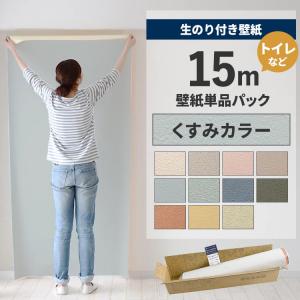 壁紙 のり付き 15m クロス 張り替え 自分で くすみカラー 緑 青 黄色 オレンジ 貼り方マニュアル付き トイレ