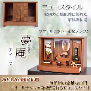 国産モダン仏壇【夢庵(ゆめあん)アイロス:ウォールナット・市松ブラウン】送料無料 ミニ仏壇・小型仏壇 家具調仏壇