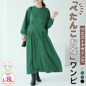 大きいサイズ レディース ワンピース ウエストタックでペタンコお腹 ワンピース 裏毛 ワンピ デザインワンピ LL 3L 4L 5L 6L 7L 8L 秋 秋物 秋 A