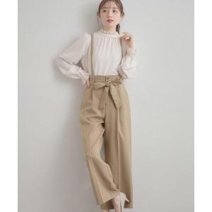 パンツ 「洗える・通勤」ウエストリボン サスペンダー付きワイドパンツ レディース
