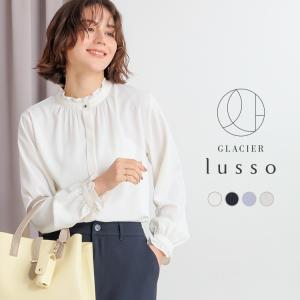 トップス ブラウス 長袖 スタンドネック フリル フロントボタン 比翼仕立て フェミニン オールシーズン 白 レディース Honeys ハニーズ スタンドフリルブラウス