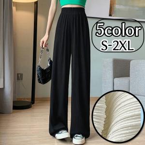 ロングパンツ ワイドパンツ フレアパンツ 細プリーツ加工 レディース 婦人服 ボトムス 長ズボン ウエストゴム 薄手 ドレープ おしゃれ カジュアル