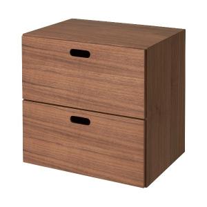 家具 スタッキングチェスト・引出し・2段/ウォールナット材突板 幅37×奥行28×高さ37cm