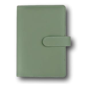 バインダー A6 6穴 PUレザー ポケット12個 ラベル付き(ティーグリーン)
