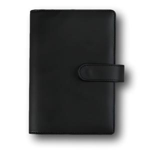 バインダー A6 6穴 PUレザー ポケット12個 ラベル付き(ブラック)