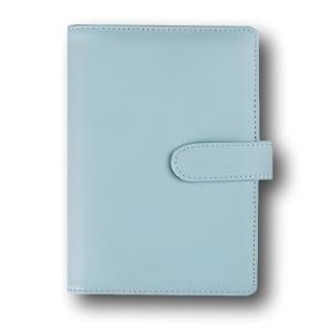 バインダー A6 6穴 PUレザー ポケット12個 ラベル付き(ブルー)
