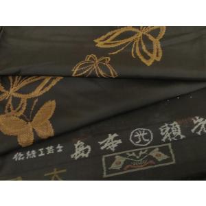 平和屋着物●伝統工芸士 島本瀬光 本場大島紬 地空き カタス9マルキ 舞蝶文 黒地 証紙付き 正絹 逸品 AABG0299cs