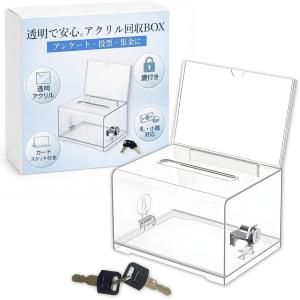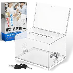 鍵付き 透明 アクリルボックス アンケートボックス 寄付箱 投票箱 カードスタンド付き レジ横 集金箱 貯金箱 (クリア, 1個)
