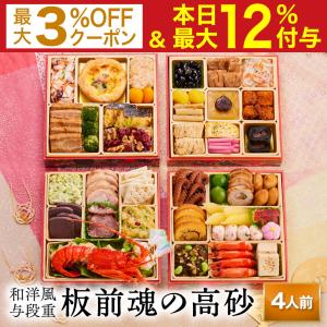 おせち 早割 2026 予約 冷凍 お節「板前魂の高砂」 和洋風 与段重 4人前 40品目 伊勢海老 テルミドール 和風 洋風 御節 2025 おせち料理