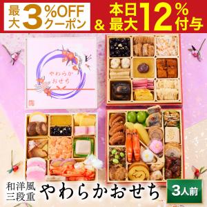 おせち 早割 2026 予約 冷凍 お節「板前魂のやわらかおせち 三段重」 和洋風 三段重 3人前 42品目 介護食 御節 2025 おせち料理
