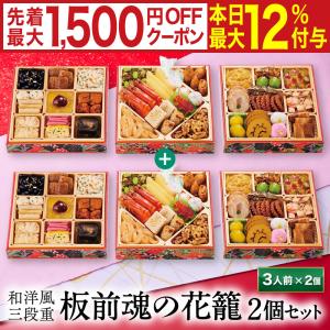 おせち 早割 2026 予約 冷凍 お節「板前魂の花籠 2個セット」 和洋風 三段重 3人前 36品目 和風 洋風 御節 2025 おせち料理
