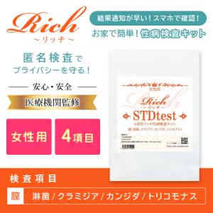 性病検査キット 女性用 リッチ 4項目(淋菌・クラミジア・カンジダ・トリコモナス) 膣検査 証明書発行 性感染症 性病 手軽 手早い 簡単 分かりやすい