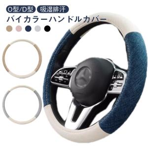 模様替え バイカラー ハンドルカバー 38cm 乗用車用 軽自動車 車 カー用品 自動車 おしゃれ 四季汎用 握り心地よい 綿麻 内装 O型 D型 滑