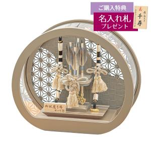 破魔弓 平安豊久 コンパクト ミニ 10号 日向 モカ塗り 丸型 円形 麻の葉文様 アクリルケース飾り 初正月 破魔矢