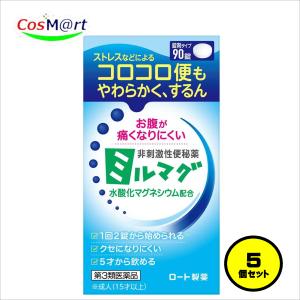 【5個セット】 【第3類医薬品】ロート 錠剤ミルマグLX 90錠 非刺激性 便秘薬 水酸化マグネシウム (4987241189076-5)