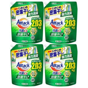アタック抗菌EX 洗濯洗剤 詰め替え 部屋干し用 2030g つめかえ用 大容量 4個セット 緑