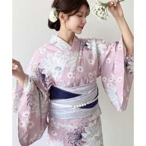 浴衣 レディース セット utatane フリーサイズ 浴衣3点セット ピンクベージュ グレー 花 レトロ 大正ロマン ピンクベージュとグレーの染め分け菊 ●