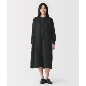 シャツワンピース 婦人 カポック混 二重ガーゼ 長袖ワンピース