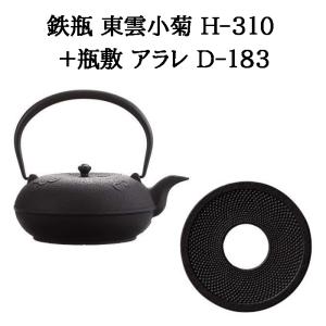 (正規品 特選国産品) (南部鉄瓶+瓶敷2点セット) 鉄瓶 東雲小菊 1L H-310 (ガス 直火 電気コンロ 200V・100V IH対応)+瓶敷 アラレ D-183 (南部鉄器 及源鋳造) zm