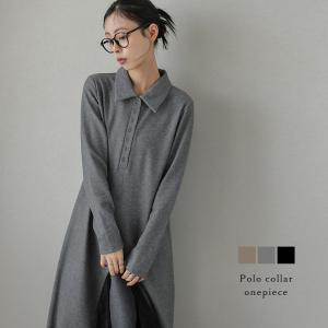 ポロ襟 リブ カットソー ワンピース 長袖 着痩せ スタイルアップ 【lswpaw25-1489】【予約販売:10月30日入荷予定順次発送】【送料無料】宅込