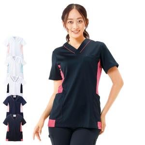 スクラブ 白衣 73-2244 レディース おしゃれ かわいい 半袖 ストレッチ 医療 介護 住商モンブラン