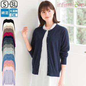 ナースカーディガン 看護師 白衣 医療 介護 事務 受付 レディース アンファミエ 自宅で洗える!なめらか綿混・丸首カーディガン