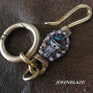 金色 ブラス 真鍮製 キーチェーン キーホルダー キーリング ネイティブ インディアン 石 ストーン 伝統 ジョイントパーツ ベルトループ ウォレットチェーン