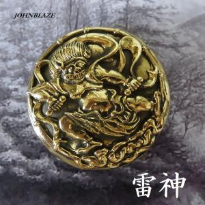 金色の真鍮製 コンチョ ネジ式 雷神 いかづちのかみ 雷電様 鳴神 雷公 ネジ付 スクリューバック シカゴスクリュー 飾りボタン カスタム ドレスアップ