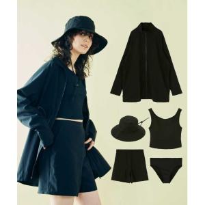 水着 バケットハット付き「紫外線防止」「UVカット」「WEB限定」5点セット UVカットリブタンキニ+ラッシュガードセット水着「BeachQueen(