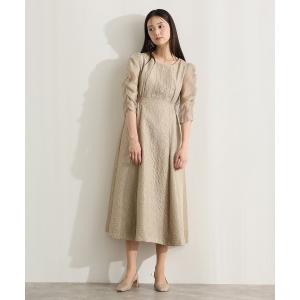 ドレス 結婚式ワンピースダマスク柄ミモレ丈、ドレス