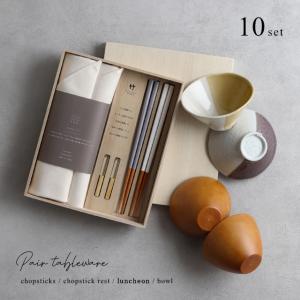 CLASEEK SOZAI Gift(夫婦箸 おしゃれ めおと箸 結婚祝い 箸セット 箸置き ランチョンマット 食洗機対応 ギフト ペア 両親 プレゼント 贈り物 木婚式 結ギフト)