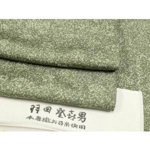 平和屋着物●極上 人間国宝・羽田登喜男 お召 本唐織 鴛鴦地紋 たたき染め 鶸茶色地 反端付き 逸品 CYAA4318s6