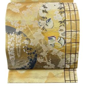 美品 袋帯 逸品 羽田登喜男監修 落款あり 鴛鴦 花咲瑞鳥紋 金銀糸 箔 金色 お太鼓柄 正絹 中古