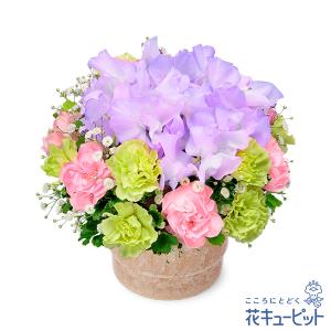 【誕生日フラワーギフト】花キューピット 女性 男性 彼氏彼女 夫妻 父母 ギフト プレゼント 紫スイートピーのミニポットアレンジメント