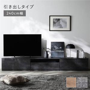 テレビボード 引出しタイプ 約幅240cm 引出し収納80cm+ガラス引出し収納80cm+引出し収納80cm ストーングレー ワイド 組立品