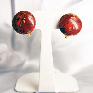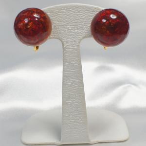 イヤリング ベネチアングラス イタリア製 ボタン 丸 金茶 赤 20mm ネジバネ式