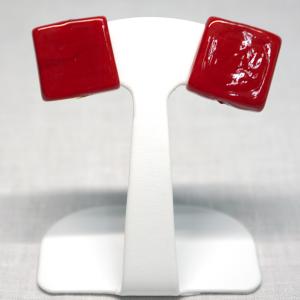 イヤリング ベネチアングラス イタリア製 角 赤 ベネチアンガラス クリップ式