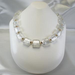ネックレス ベネチアングラス イタリア製 角 46cm 糸結び シルバー ベネチアンガラス