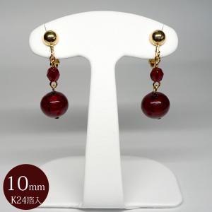 イヤリング ベネチアングラス イタリア製 ドロップ 揺れる K24金箔入り 赤 10mm ネジバネ式