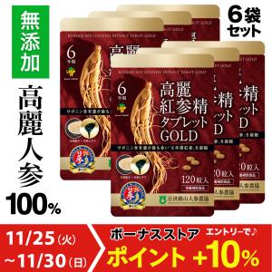 超得!まとめ買い 高麗人参 サプリメント 6年根・高麗紅参精タブレットGOLD(120粒)6袋セット/錦山人参農協 朝鮮人参 紅参 ginseng