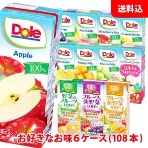 送料無料 Doleドール 果汁100%ジュース200ml / 農協野菜days200ml ケース単位で選べる6ケース(108本) 紙パック ジュース アソート 雪印メグミルク