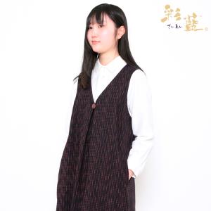 (数量限定)おしゃれ ジャンパースカート(彩藍 縞絣) 縞絣調 赤のみ 綿100% (通販サイト・直営店限定販売) 宮田織物 秋 冬 春 レディース