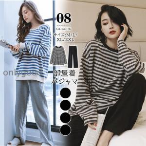 パジャマ ルームウェア レディース 長袖 ストライプ柄 上下セット パンツ tシャツ ゆったり 部屋着 可愛い 寝巻き ナイトウェア ゆったり
