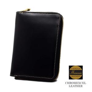 日本製 革財布 おすすめ ビジネス 財布 本革 二つ折り財布 ホーウィン クロムエクセルレザー 牛革 ミディアム ラウンドファスナー 大容量 ウォレット