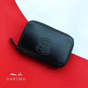 新作【mu-福だるま-】本革 Rファスナー コンパクト財布 福だるま 黒【DARUMA】[mu-11360]