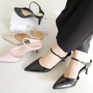 パンプス ミュール ストラップ ベルト デザイン 5.5センチヒール バックストラップ レディース 歩きやすい amiamiアミアミ